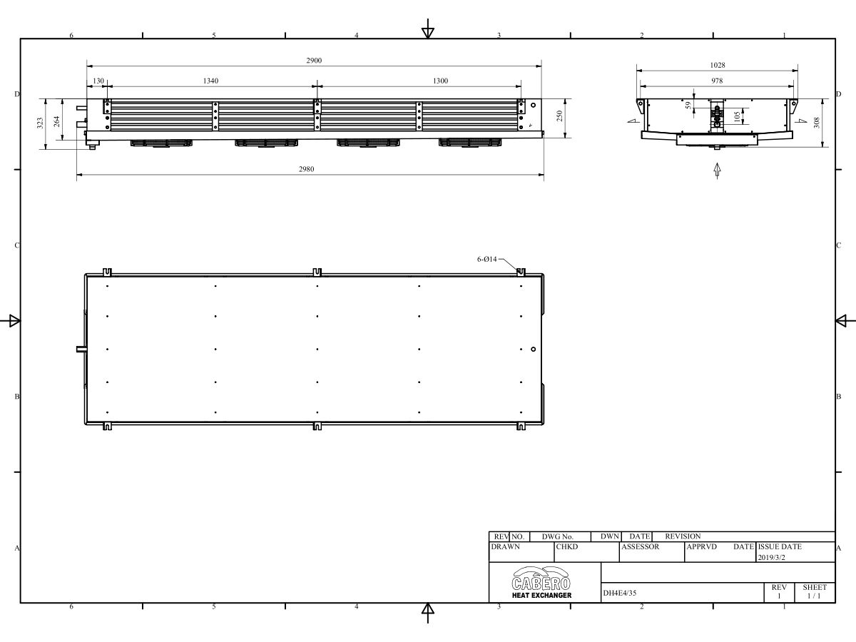 DH series dual air discharge evaporators are designed for process and packaging rooms and for sensitive products where reduced air flow is optimal. The DH evaporators are mounted centrally to the ceiling and use a forced draft air flow design to distribute low velocity air into the refrigerated space. Both drip trays fold down for easy access and are powder coated internally for easy cleaning. The fans are fully wired and the panels are easily removed for installation and maintenance. Plenty of room is provided for mounting the TX valve. The combination of 12mm smooth bore thick walled copper tubes and return bends with blue fin protected fins protect the heat transfer surface.