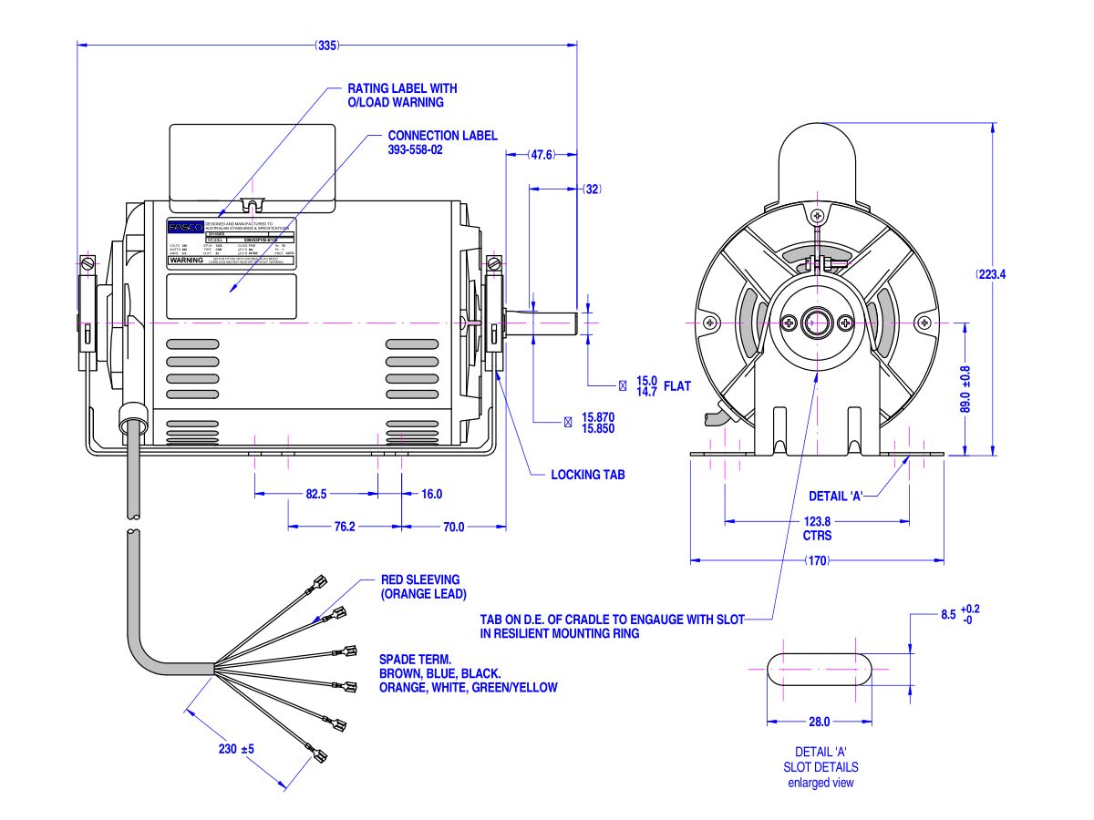 Specification Sheet - Fasco Fan Motor 240V 600W 809455PVB-B13S