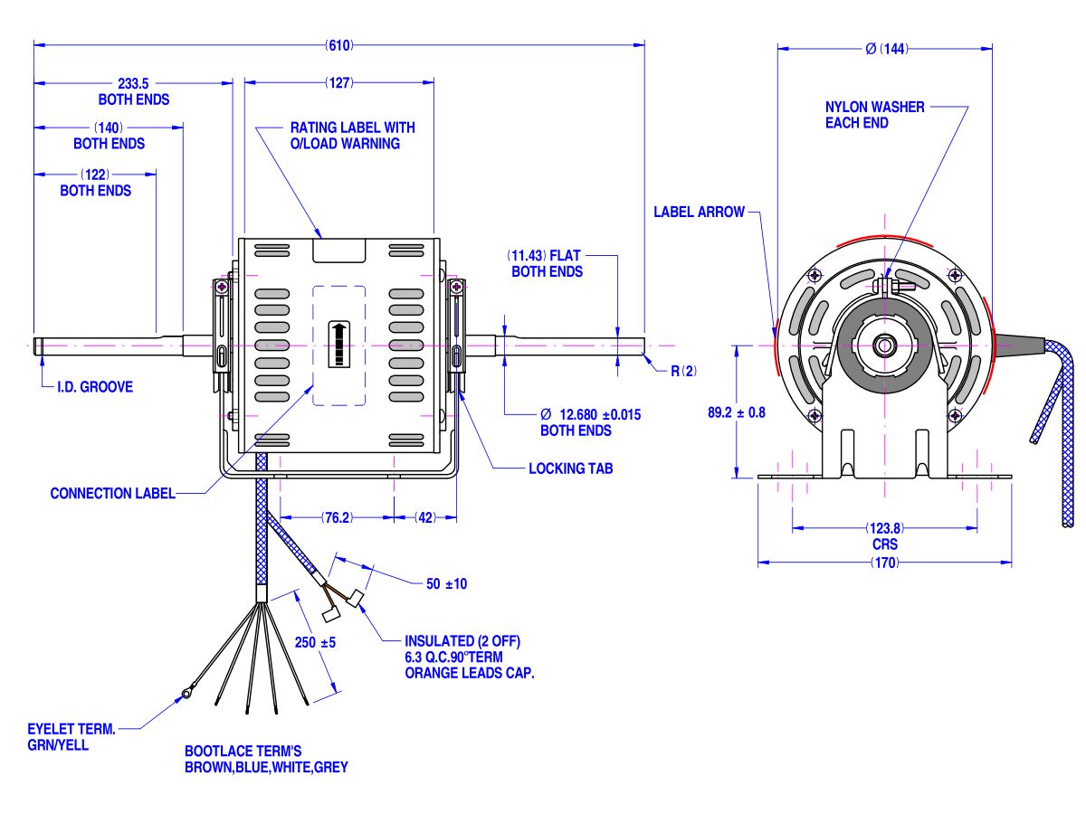 Specification Sheet - Fasco Fan Motor 240V 750W 808555QVA-A11S