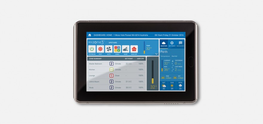 One of the premium products we offer is the Myzone 3 tablet. Myzone 3 is a climate control system that gives the home owner the ability to have precise control of the temperature in each room individually. Compatible with the leading air conditioner brands in the industry and the ability to zone up to 14 zones Myzone 3 offers the complete solution for zoning matched with a 10-year warranty. Myzone also offers an easy to use App which enables the home owner to control your air conditioning system via your smart phone or tablet.
